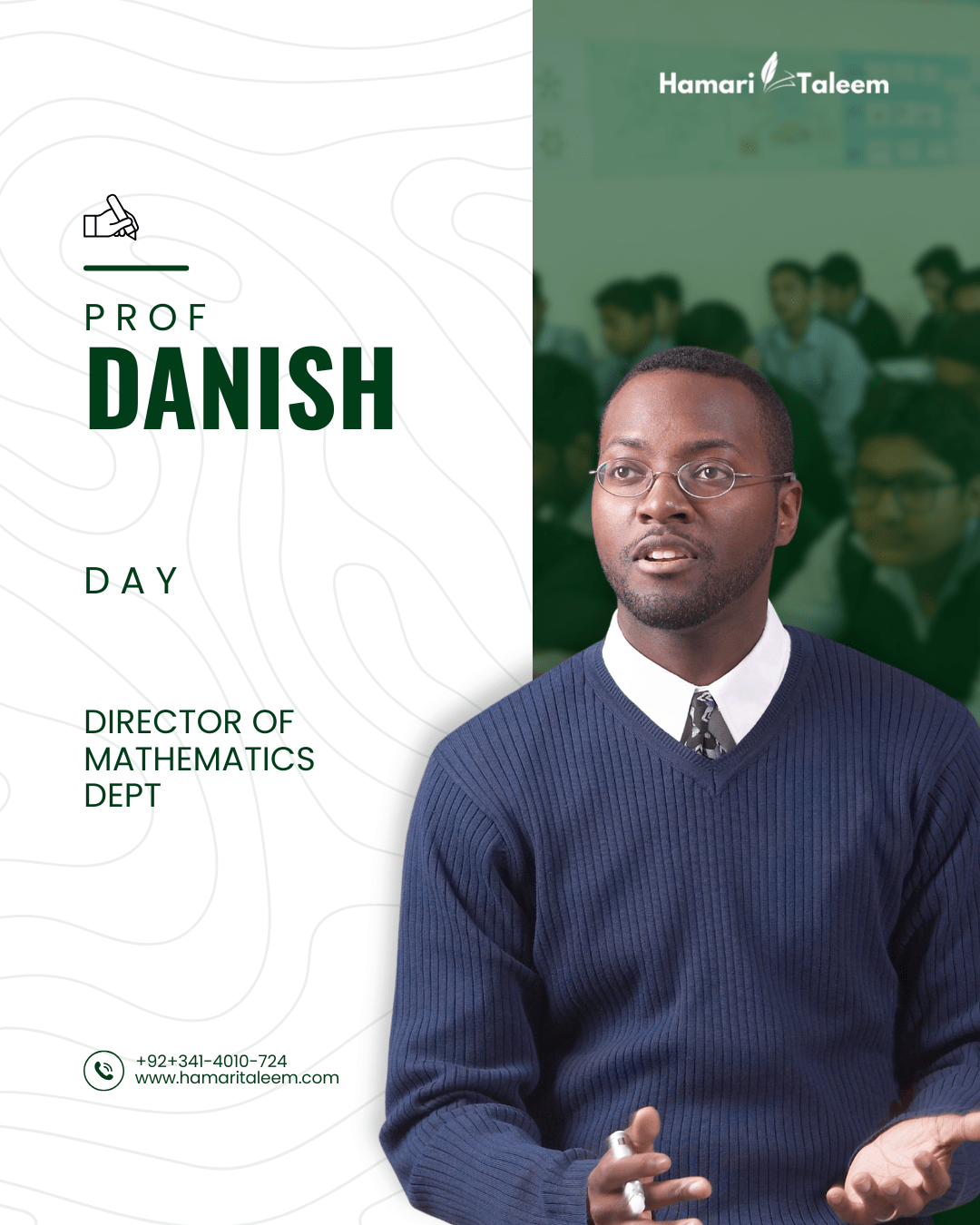 Prof. Danish is the Director of the Mathematics Department, known for his strong academic background and commitment to excellence in education. He is dedicated to helping students build a solid understanding of mathematics through practical learning, critical thinking, and problem-solving skills. Under his leadership, the department continues to provide quality education and academic support to students.