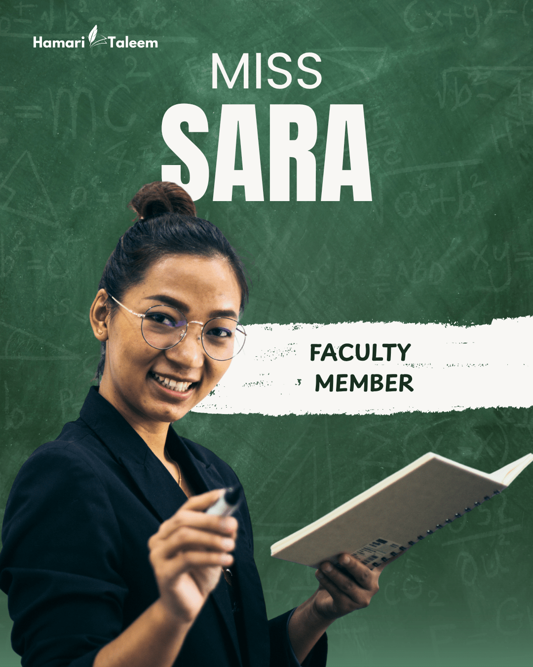 Sara is a dedicated English teacher with a passion for helping students improve their language, communication, and writing skills. She creates a positive and engaging learning environment where students feel confident to express themselves and develop their understanding of English literature, grammar, and spoken language.